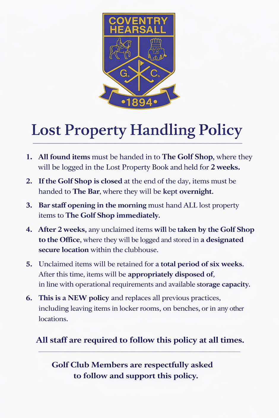NEW LOST PROPERTY POLICY AS OF 1ST OF MARCH