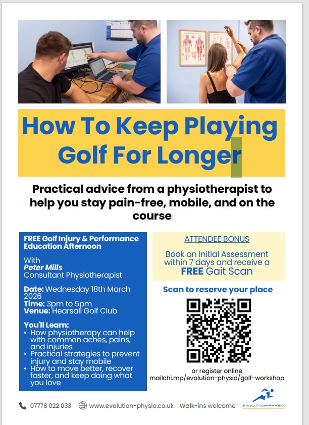 We’re pleased to be hosting a FREE Golf Injury & Performance Education Afternoon at Hearsall Golf Club this March — designed specifically for golfers who want to move better, reduce aches and pains, and extend their playing years.